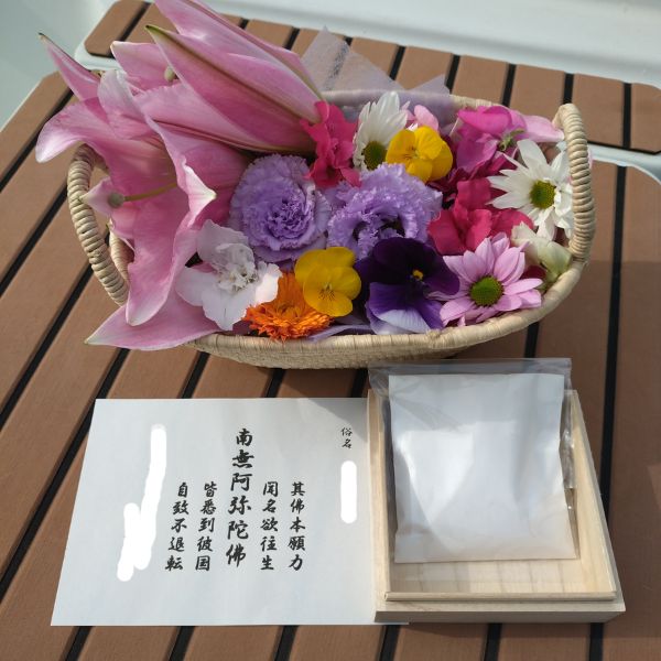 この度は大変お世話になりました。叔母も私と同様にとても感謝していると思います。正直、ここまで丁寧に散骨して頂けるとは思いませんでした。ありがとうございます。